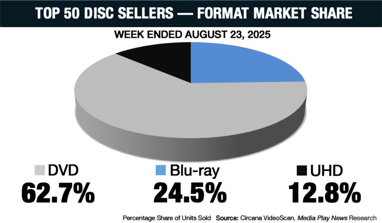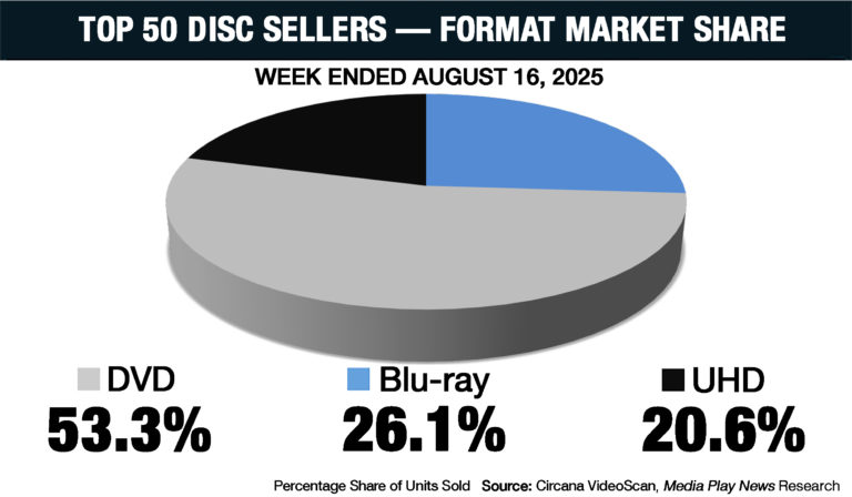 A quiet week for new releases, and both 4K and Blu-ray market share were down.